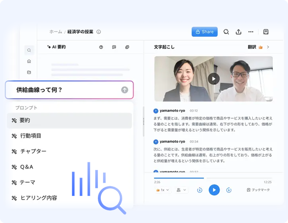 音声とテキストデータをAIが分析し、重要なインサイトを提供します。