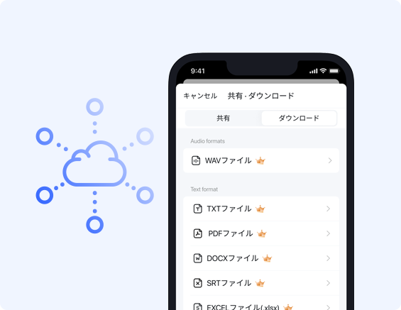 nottaリンク/WAV/TXT/PDF/DOCX/SRT/EXCEL